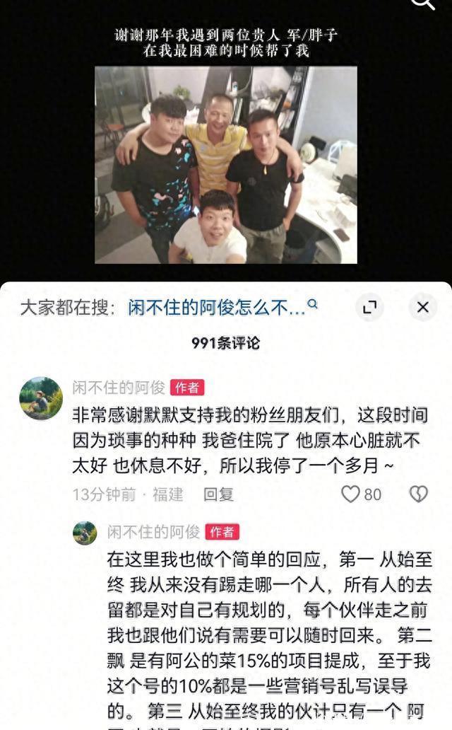 一句弹幕,把阿俊直播间挤到50万人同时在线。 镜头里他举着一沓住院单,手抖得不像演的: “我爸在ICU,我停更一个月,回来就被骂白眼狼。 ” 屏幕那端,阿飘新号刚发视频,银行流水盖着红章,每月5000,整整三年,一行行像抽在脸上的巴掌。 观众瞬间分裂成两派:一派说“铁证”,一派喊“P图”。 没人关心田里麦子熟没熟,只想看兄弟反目的大结局。 阿俊把病历翻到背面,露出2018年12月的旧公章——“觅世”改名“闲不住的阿俊”那天,粉丝87万。 时间线一拉,阿飘第一次出镜是2019年4月,当天点赞暴涨40%,评论区齐刷“这弟弟能处”。 现在回头看,那条视频像埋好的雷,只是引线够长。 MCN圈里人见怪不怪:三农账号60%都是“先上车后补票”,等粉丝破百万再谈分成,晚了。 抖音50亿三农蛋糕,78%被团队分走,个人只剩22%的渣。 说白了,镜头里一个人,镜头外一群人,分钱时才见真户口。 阿飘最新一条视频,BGM用了《故乡的云》,文案只写了一句“流水不争先,争的是滔滔不绝”。 有人解读成示弱,有人读成宣战。 弹幕飘过:“8万算个屁,流量值800万。 ”