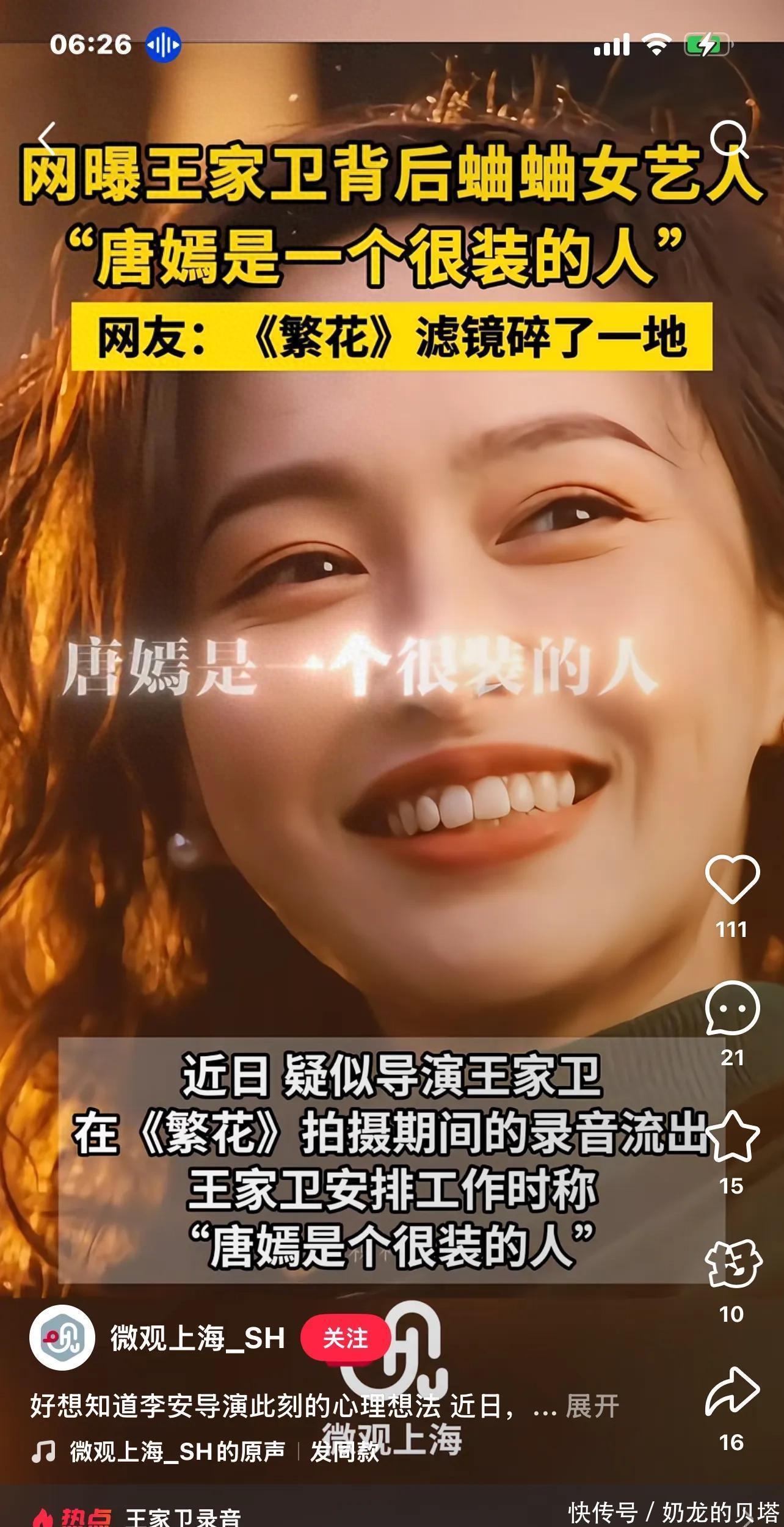 近日,一段流出的录音在网络上引发了热议。在录音中,导演王家卫竟然说唐嫣是个很装的人。这一说法瞬间引起了轩然大波,网友们纷纷为唐嫣打抱不平。