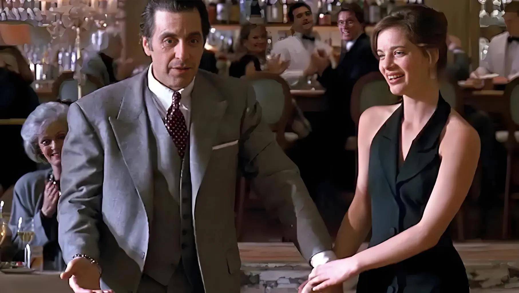 阿尔.帕西诺片中饰演一位暴躁,失明却魅力非凡的退役军官。那段著名的探戈和法庭演讲桥段,展现了他精深的演绎功底,其演技堪称表演教科书。