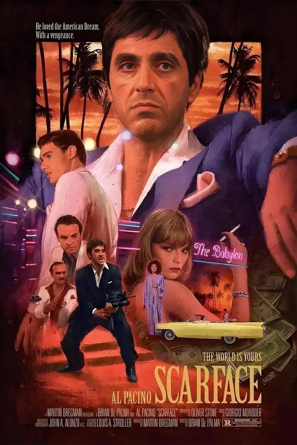 1983年布莱恩·德·帕尔玛执导的惊悚片。阿尔·帕西诺与斯蒂文·鲍尔,米歇尔·菲佛等领衔主演。阿尔.帕西诺凭借该片获得第41届美国金球奖电影剧情类最佳男主角提名。