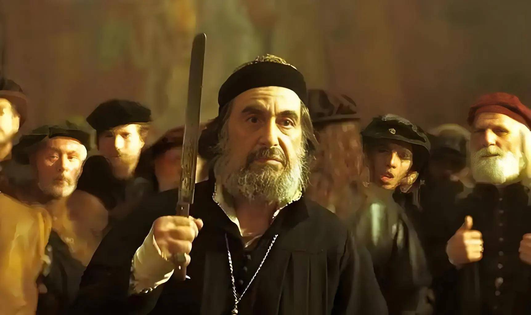 阿尔.帕西诺诠释的犹太放债人夏洛克只是个苦苦挣扎,最后还是失去了一切的可悲老人,他完美的诠释了犹太商人夏洛克身上前所未有的深度和人性。