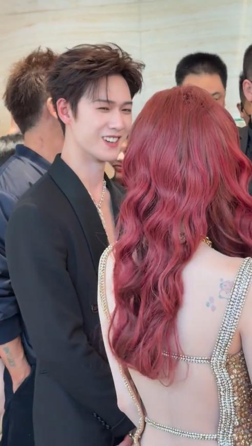 先说说最先亮相的宋雨琦,她当天的造型确实亮眼,一头惹眼的红发格外吸睛,搭配一条金色吊带裙。