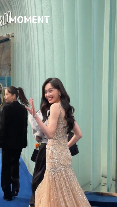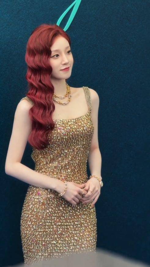 宋雨琦作为品牌大使,这次的造型确实花了心思,红发和金裙的搭配,既符合她的气质,又能凸显品牌珠宝的精致。